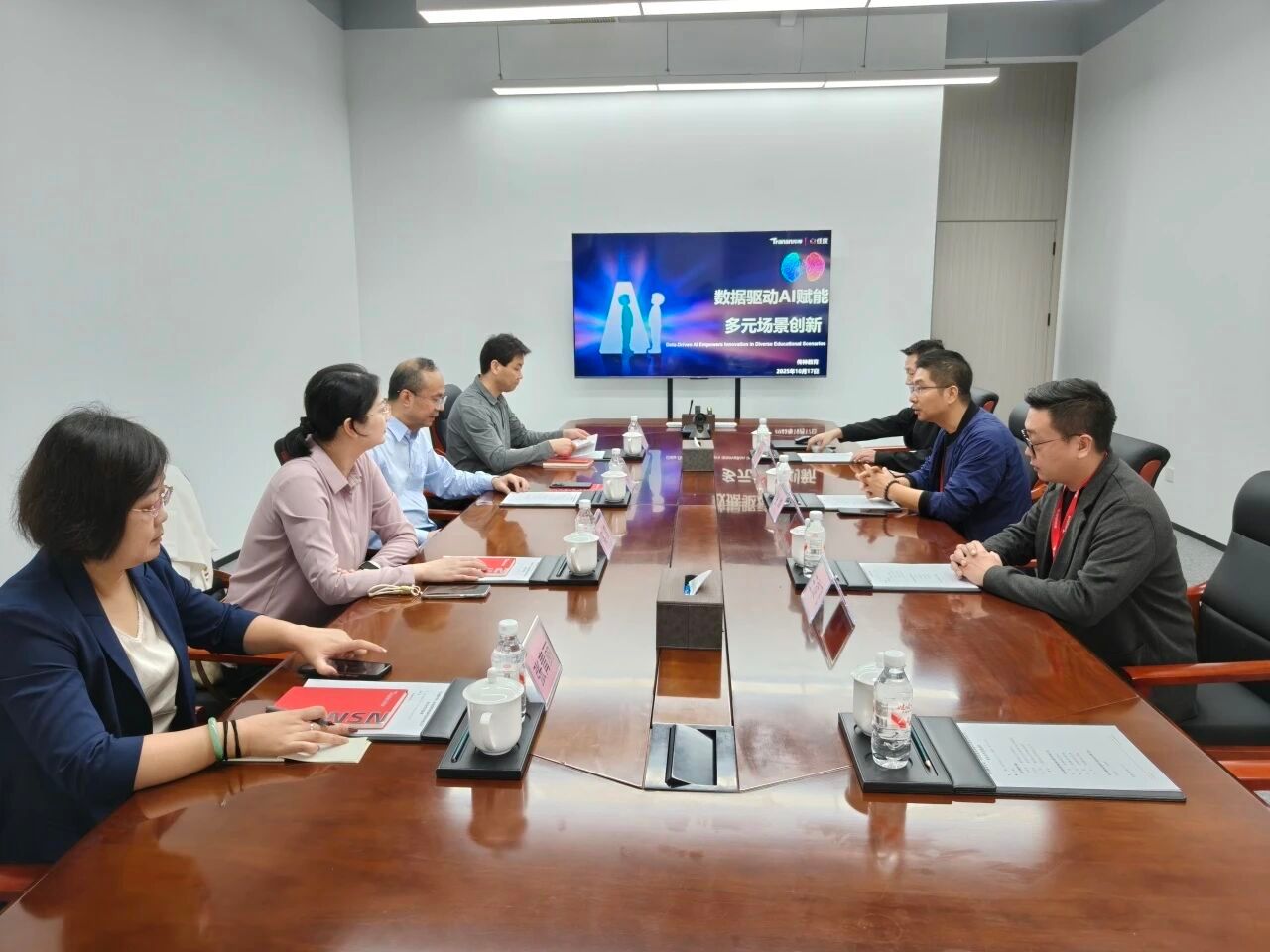 在座谈会上,李庆明详细介绍了学校的办学特色、学院专业建设的定位、科研教学成果以及师资队伍建设等基本情况。随后,企业代表围绕数字人才培养进行了专题分享。经过深入的研讨,双方达成了共识:共同建设AI辅助的特色课程,借助真实商业项目提升学生的实践能力,开展教师数字素养的研修活动,助力师资队伍更好地适应智能语言服务的新业态。