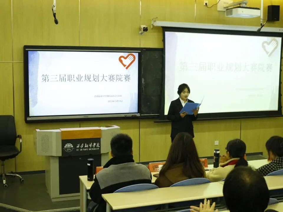 在就业赛道的角逐中,8名参赛选手则展现出了更为成熟的职业风貌。他们通过自我认知、行业分析、就业规划和出色的现场答辩,模拟真实的求职场景,充分展示了自身的综合素质、岗位适配能力以及解决实际问题的能力。选手们目标明确、准备充分,经过激烈角逐和评委们公正、专业的评审,两个赛道共评选出五名优秀选手,将代表学院参加校级选拔赛。