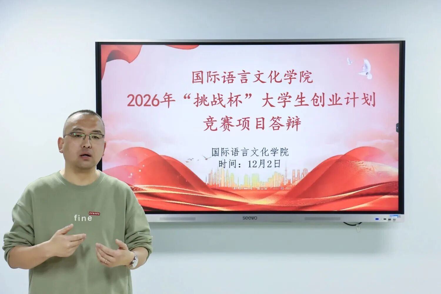 为激发学生的创新精神与创业意识,培育优秀创业项目,12月2日下午,m88 app在3120教室举办2026年“挑战杯”大学生创业计划竞赛院级决赛。学院特邀综合办公室主任张青丽、德语系主任王勃、法语系主任王姗姗、西俄系主任张力心、西班牙语教研室主任杨茜担任评委。