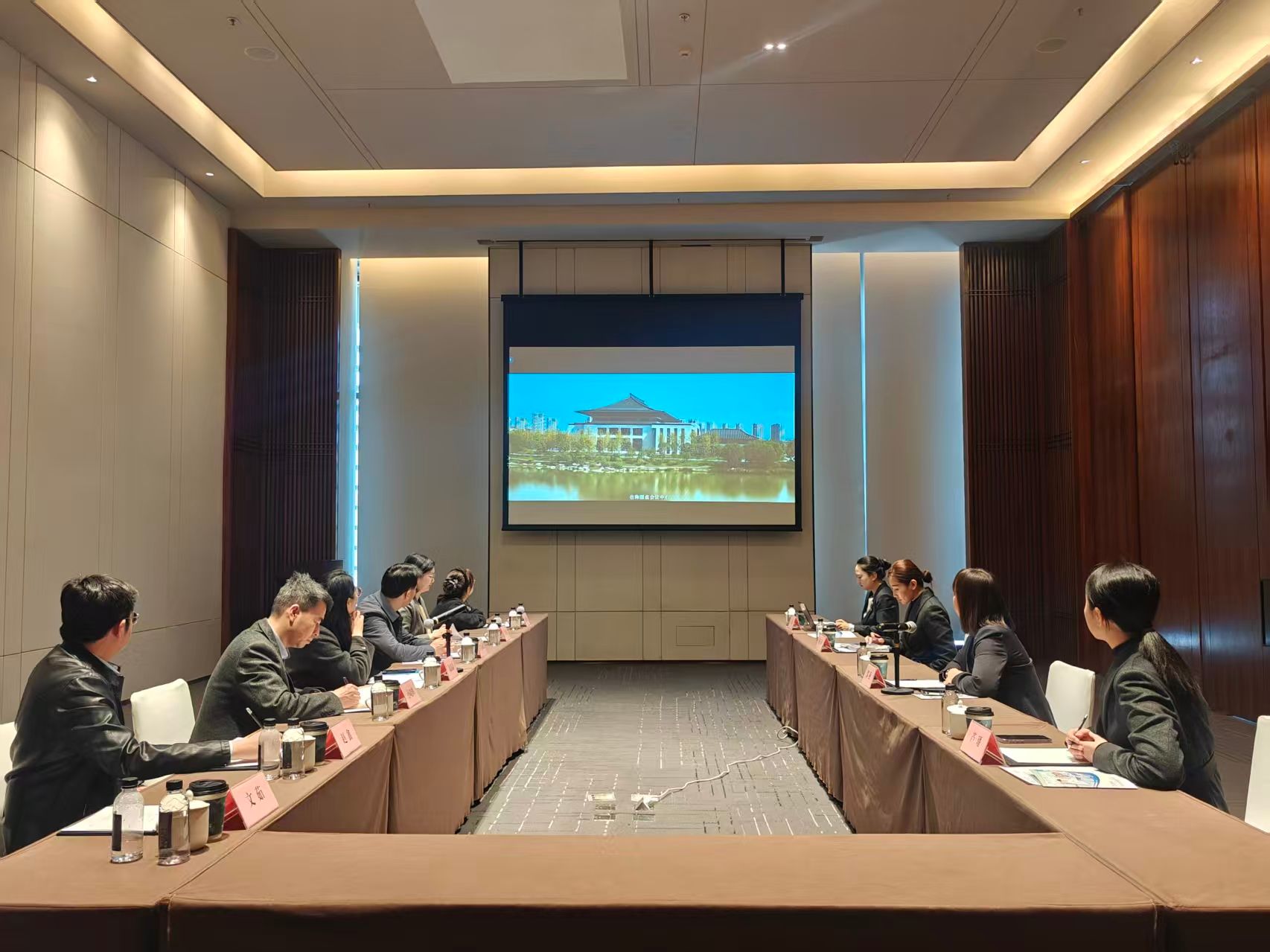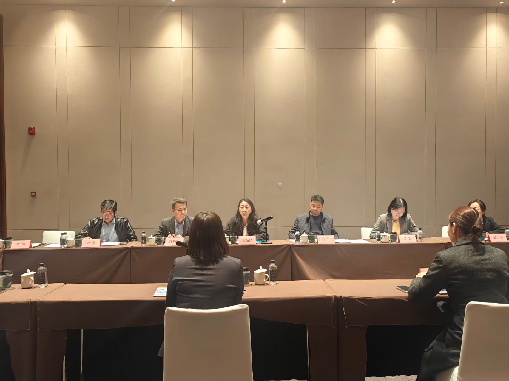 参观结束后,双方在会议室举行深度座谈交流,会议由西安国际会议中心人力资源经理马赛主持。会上,与会人员共同观看了双方单位宣传片,全面了解彼此的发展概况、业务布局与合作潜力。郑燕副总经理在致辞中对m88 app一行的到访表示热烈欢迎,她介绍了会议中心作为承接大型国际会议、外事活动核心平台的发展规划,着重指出企业对具备多语言沟通能力、跨文化交际素养及专业会服技能的复合型人才的迫切需求,期待与学校建立长期稳定的合作关系,实现资源共享、优势互补。高晶晶主任在致辞中感谢西安国际会议中心的热情接待与精心安排,她表示,学校始终将毕业生就业工作放在核心位置,此次访企拓岗旨在精准对接企业实际需求,打通人才培养与就业市场的“最后一公里”,希望以此次交流为契机,深化双方在实习就业、人才培养、志愿服务等方面的全方位合作,为学生搭建更高质量的实践与就业平台。