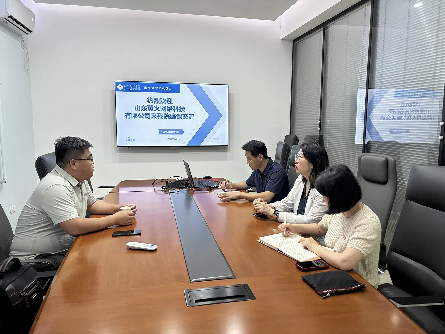 2025年9月4日,山东翼火网络科技有限公司负责人赵经理访问m88 app,与学院党委书记、行政副院长宇文永康,学院科研副院长魏海燕及日语专业教研室主任齐娜,就日语专业学生实习实践、项目合作及人才培养等议题进行了初步交流和探讨。