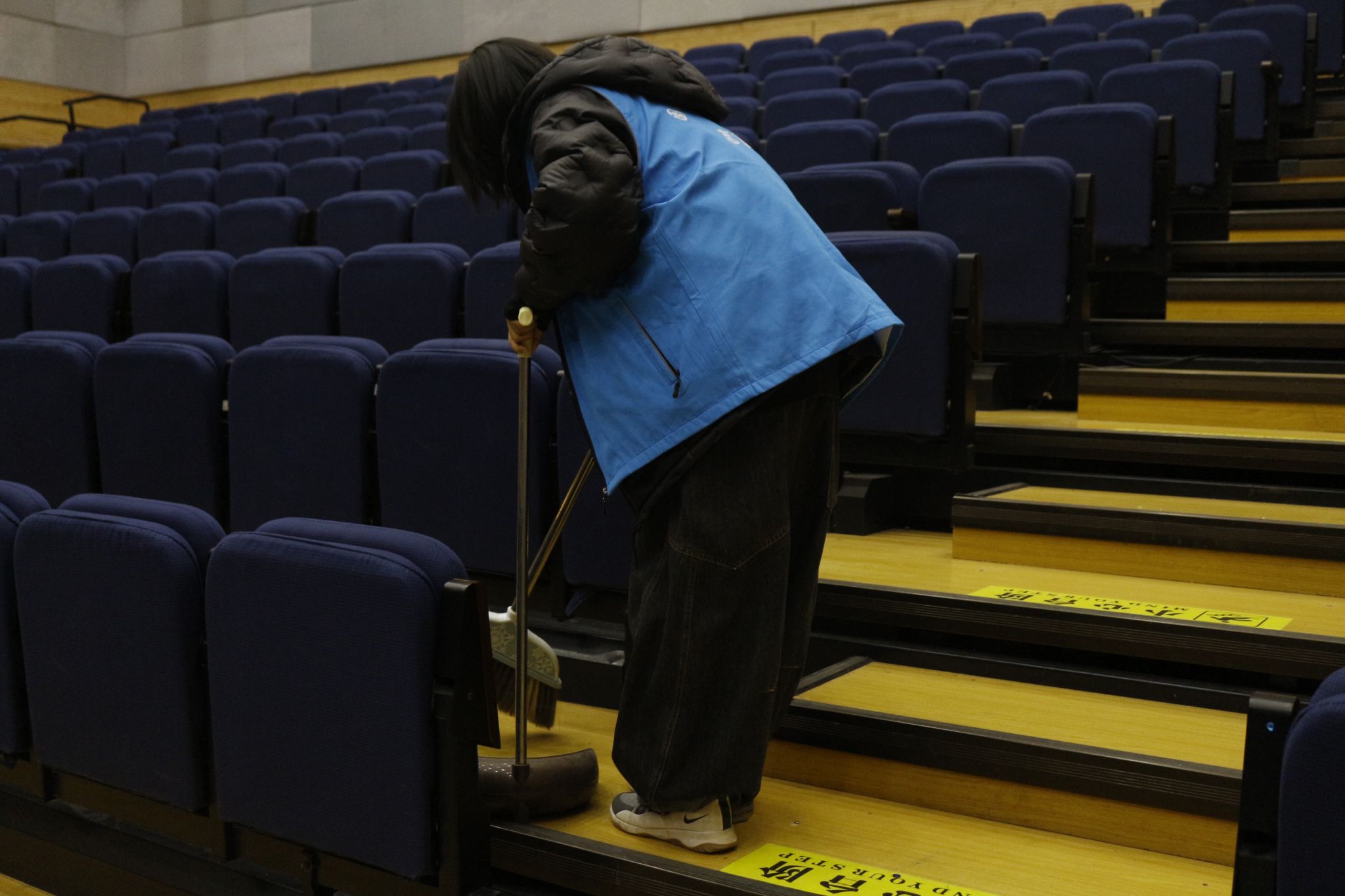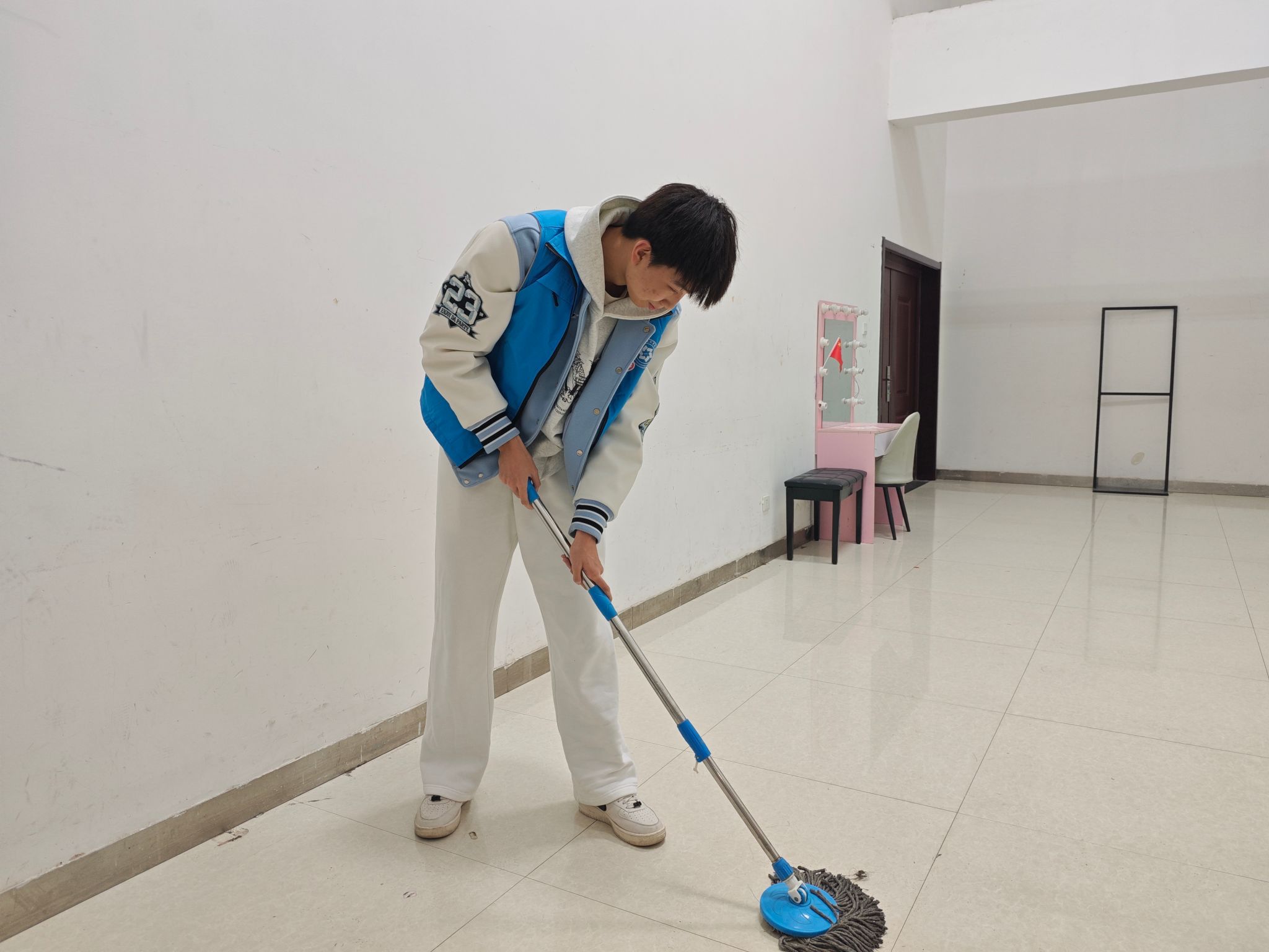 志愿者们认真打扫东区演播大厅,以无私奉献的精神践行了全心全意为人民服务的雷锋精神。他们细致地擦拭座椅、清扫地面、整理设备,确保演播大厅焕然一新,为学院的文体活动场地营造了一个整洁、舒适、充满活力的环境。同时,志愿者们还积极参与整理器材、布置活动场地,保障每一次文体活动顺利进行。在这个过程中,他们展现了新时代青年的责任与担当,不仅为同学们提供了更好的活动空间,也进一步丰富了校园文化生活,彰显了学院积极向上的精神风貌,为学院文化体育建设贡献了自己的青春力量。