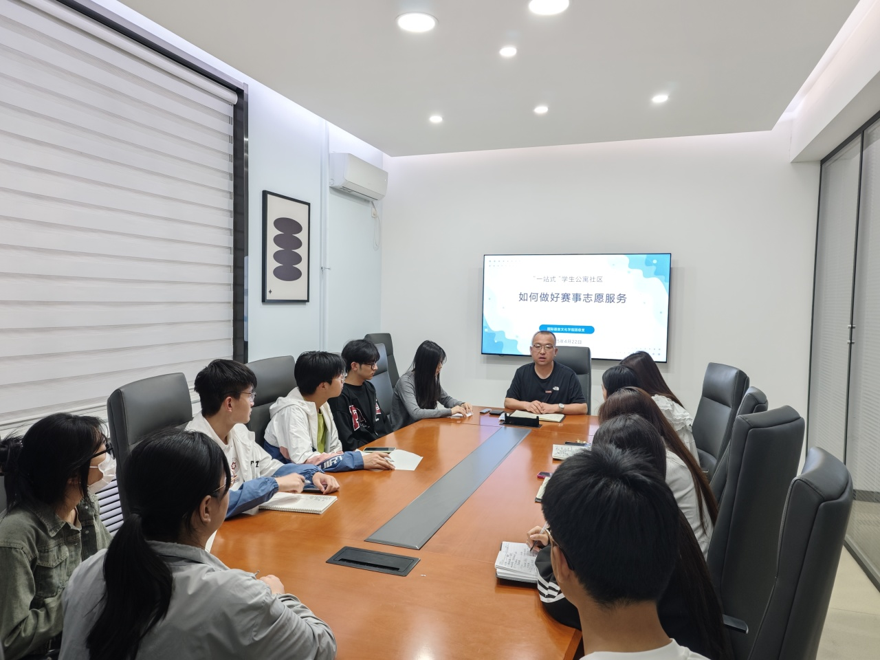 在2025年运动会的筹备与开展过程中,“一站式”学生公寓社区积极参与到赛事志愿服务工作中。为了进一步提升服务质量,优化志愿服务流程,m88 app团总支书记陈福礼在3120创咖组织相关人员对本次赛事志愿服务工作进行了全面的反思和总结。