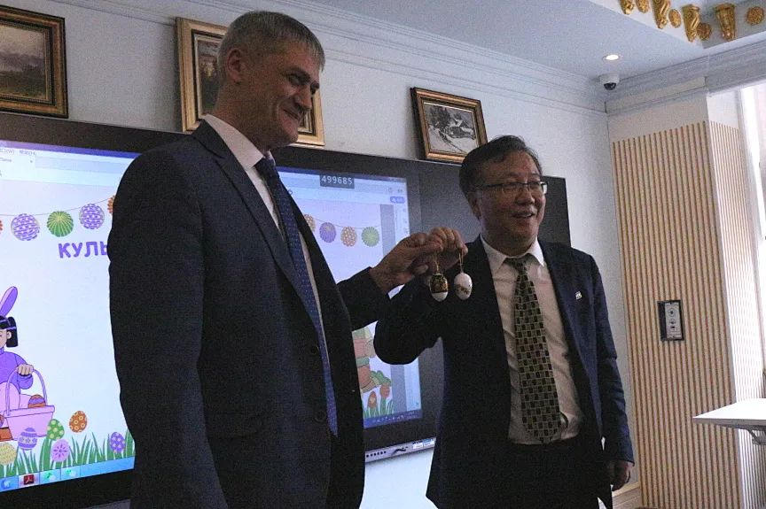 表演结束后,领导与学生们共同参与彩蛋绘制活动。大家手持画笔,在彩蛋上精心勾勒俄罗斯传统花纹与特色图案,鲜艳的色彩与细腻的笔触交织,不仅创作出一件件精美的艺术作品,更在互动中加深了对俄罗斯文化的理解与热爱。