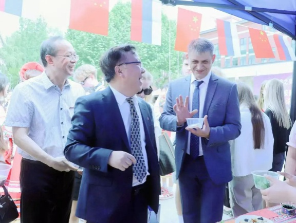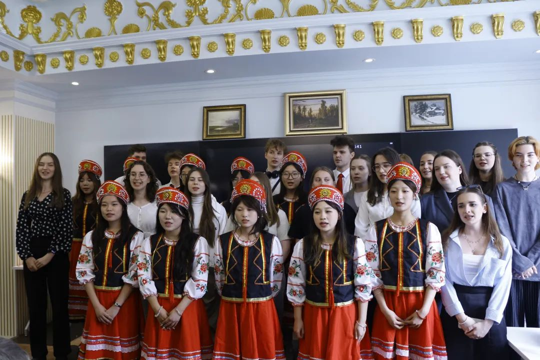 与会领导及师生首先来到俄罗斯体验馆,开启一段充满异域风情的文化之旅。俄语专业的学生和俄罗斯留学生一起以精彩的唱歌表演率先登场,他们用纯正的俄语和饱满的热情,演绎了多首经典俄罗斯歌曲,激昂的旋律与嘹亮的歌声,瞬间点燃现场气氛,将俄罗斯音乐的独特魅力展现得淋漓尽致。