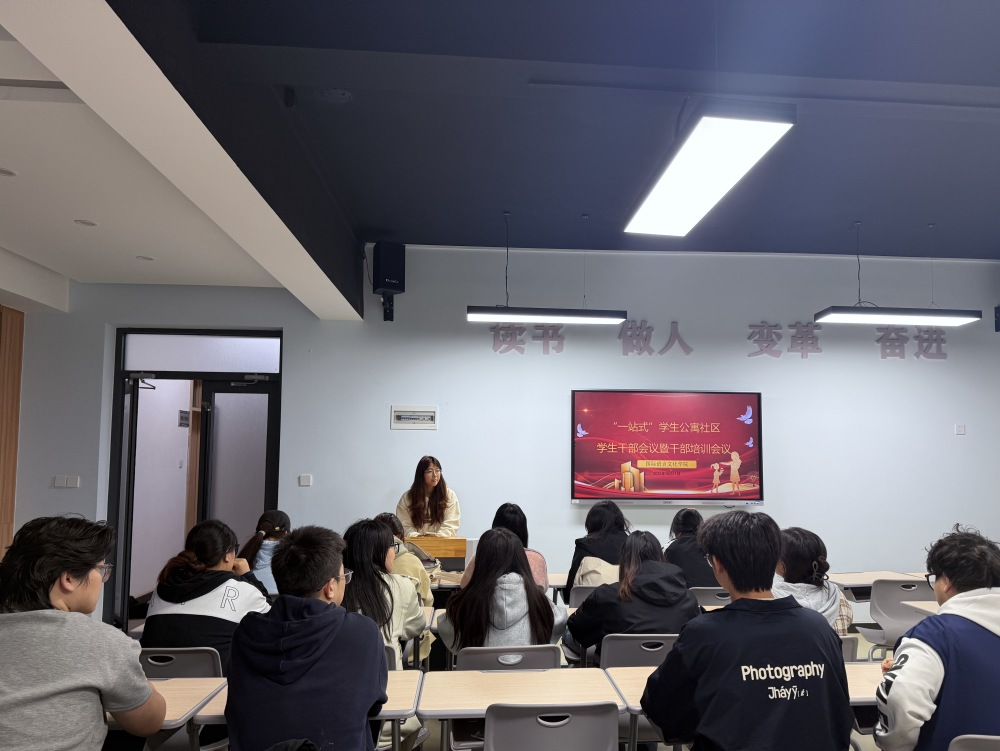 会议伊始,干部代表围绕“一站式”公寓社区的建设目标与本学期重点工作展开部署。从活动流程的具体安排、安全隐患的细致排查,到同学需求响应机制的搭建,清晰明确各部门干部的职责分工,同时结合活动细节讲解工作要点。强调“学生干部是社区与同学间的桥梁,要以‘服务者’姿态扎根同学、解决难题”,为后续工作划定清晰方向。