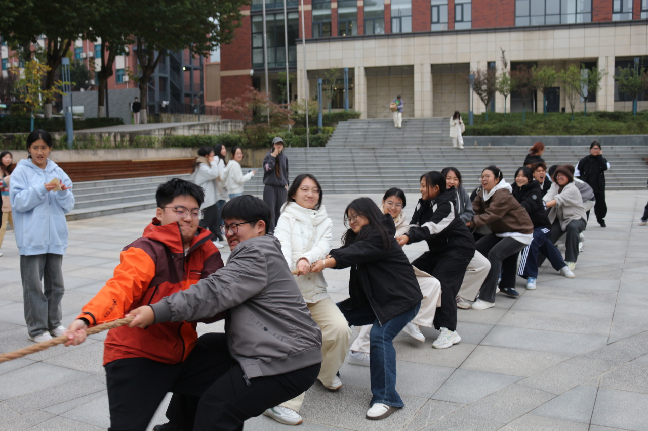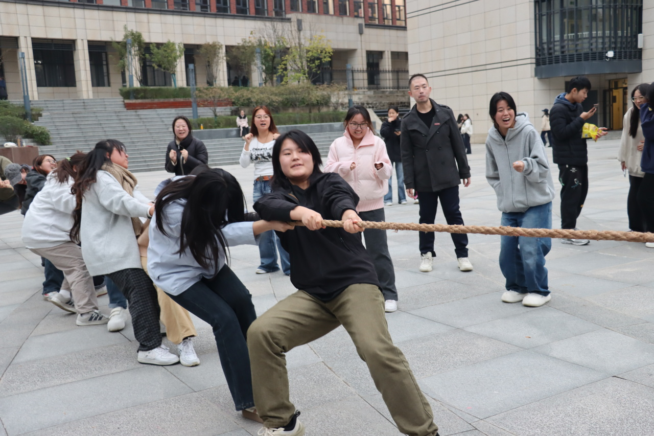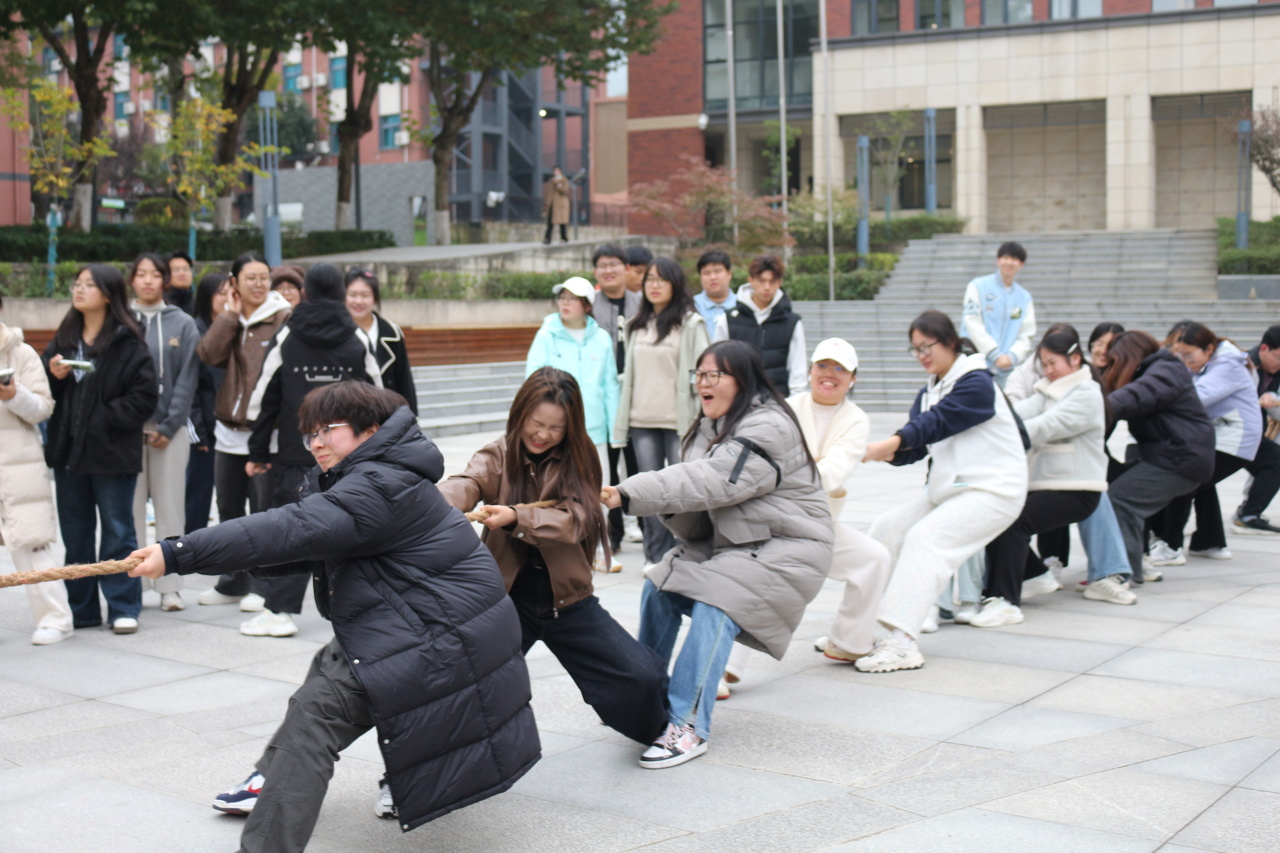 2025年10月22日m88 app在西区五号楼广场举办了“挥动激情,放飞梦想”主题拔河比赛。本次拔河比赛以“合作、团结、拼搏、自信”为主题,旨在推进精神文明建设与身体素质综合发展,营造积极、健康、向上、良好的学院体育氛围,凝心聚力,推进学院高质量发展。