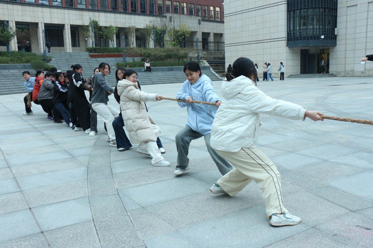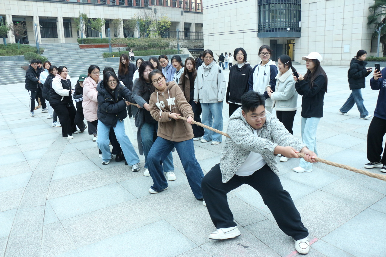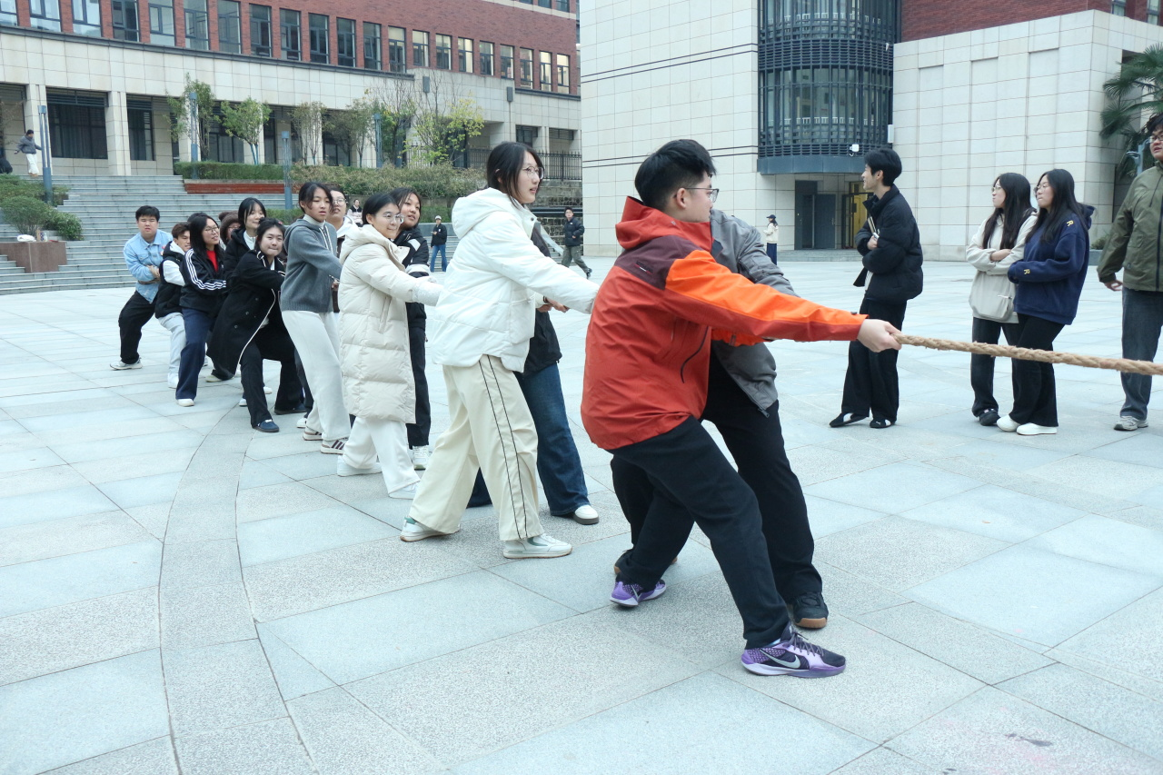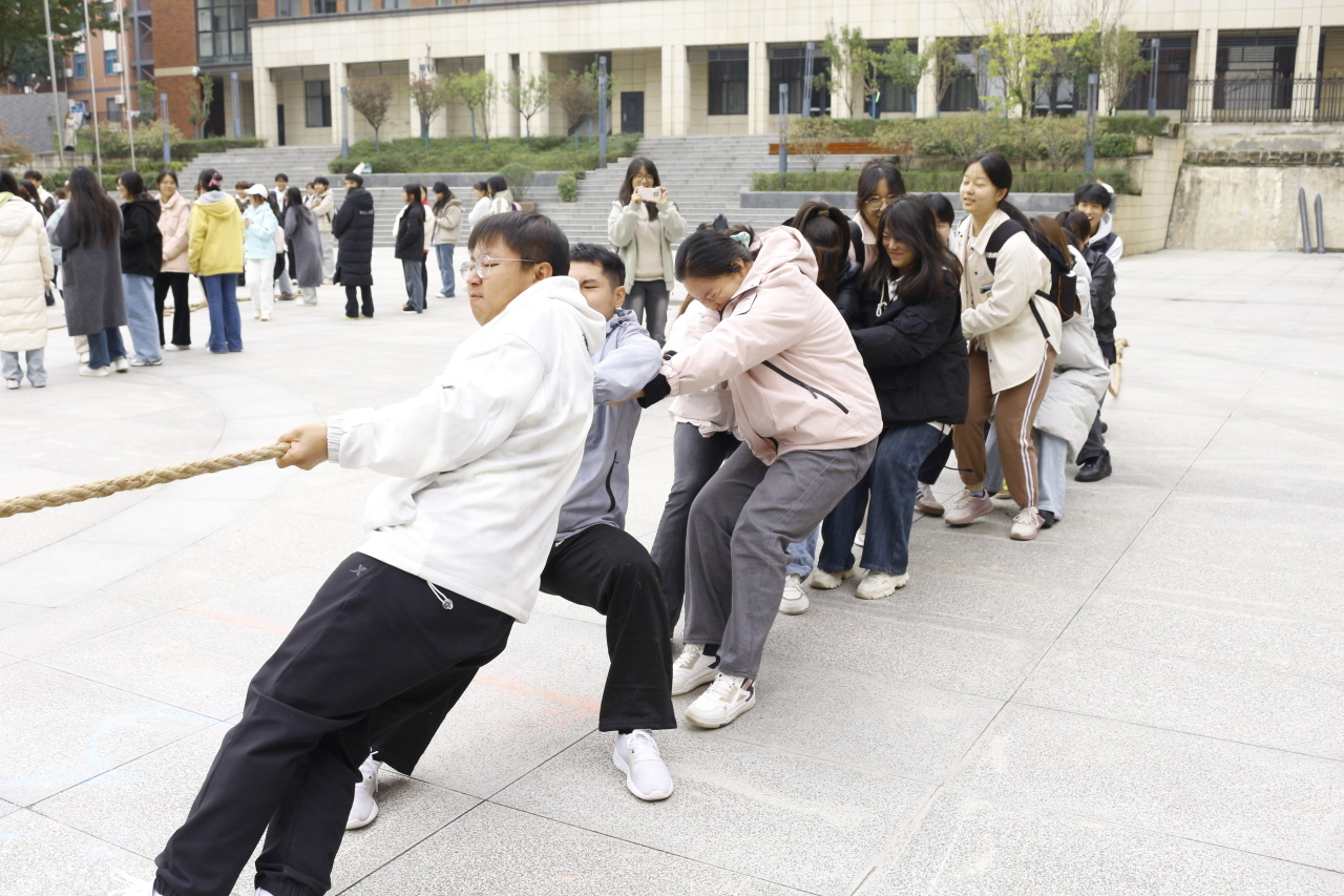 2025年10月22日m88 app在西区五号楼广场举办了“挥动激情,放飞梦想”主题拔河比赛。本次拔河比赛以“合作、团结、拼搏、自信”为主题,旨在推进精神文明建设与身体素质综合发展,营造积极、健康、向上、良好的学院体育氛围,凝心聚力,推进学院高质量发展。
