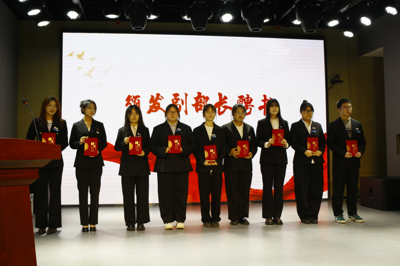 针对新团队未来发展,牛老师提出明确要求:希望全体成员始终以学业为根基,科学规划时间,实现学习与工作的有机平衡、互促共进;在各类实践活动中主动担当作为,不断锤炼沟通协调、统筹策划等综合能力,将理论知识转化为服务同学的实际本领;以开放包容的心态凝聚团队合力,在协作中尊重差异、互补共赢,营造团结向上的工作氛围;更要始终坚守服务同学的初心使命,倾听同学需求、回应同学关切,用真心实意搭建起学院与学生之间的沟通桥梁,让学生会真正成为有温度、有担当、有力量的集体,为学院发展贡献青春力量。