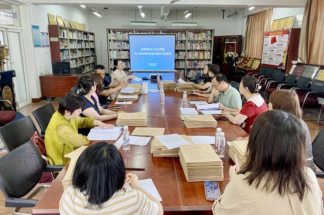 6月30日,m88 app邀请西安外国语大学日语专业吴少华教授、德语专业张世胜教授、法语专业向征副教授、西班牙语专业曹韦副教授、朝鲜语专业孙金秋教授以及陕西师范大学俄语专业孟霞教授,对2023届本科毕业论文进行复查。