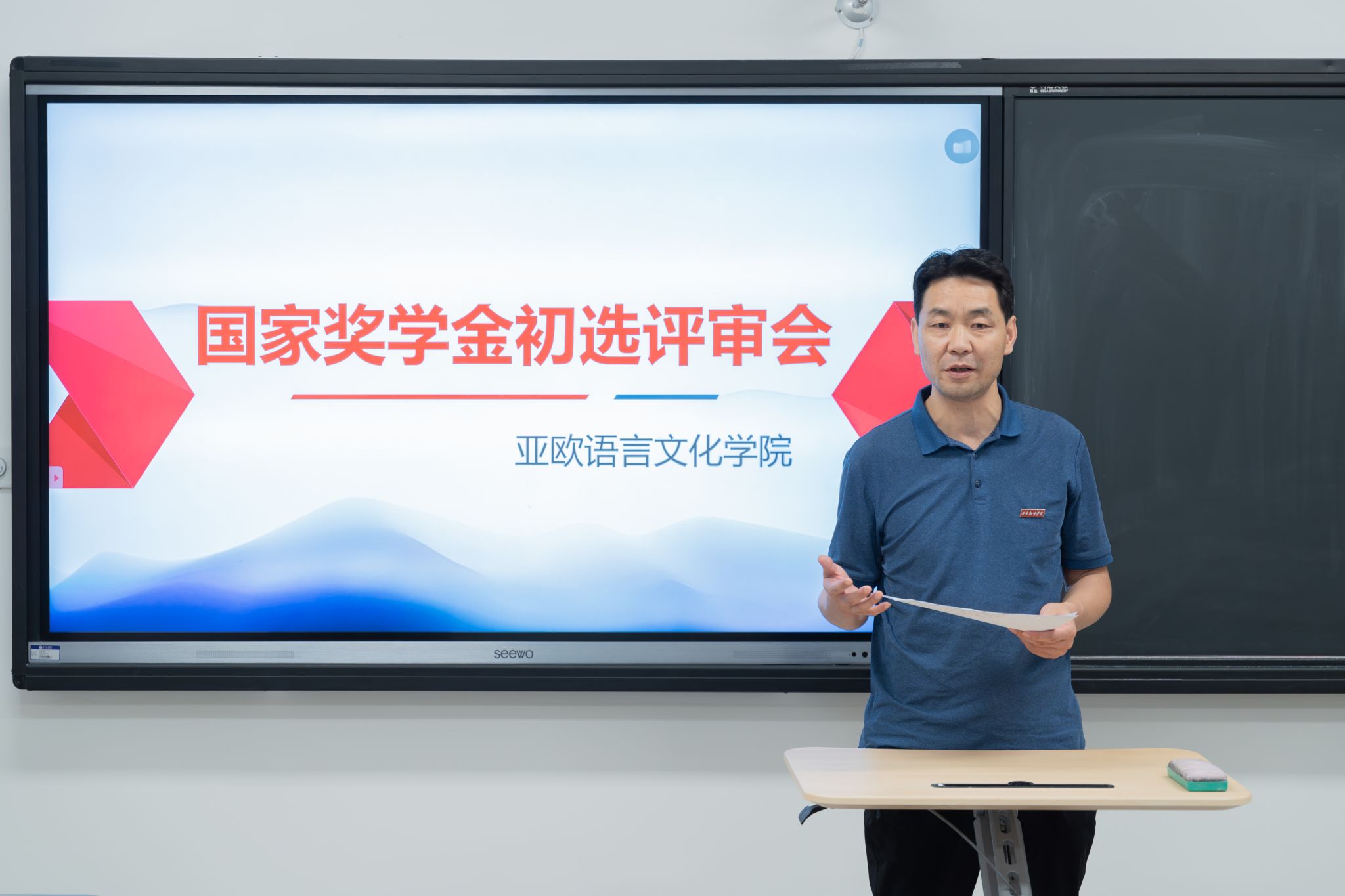 为做好我校2023年国家奖学金评选工作,激励我院学子勤奋学习,积极向上,展现出西译学子求知好学的精神,促进优良学风的建设,m88 app于9月20日下午在4105教室召开了国家奖学金初选评审会。m88 app党委书记、副院长宇文永康,学工办主任尹娜,团总支书记陈福礼及部分辅导员代表参会并担任初选评委,会议由黄丽娜老师主持。