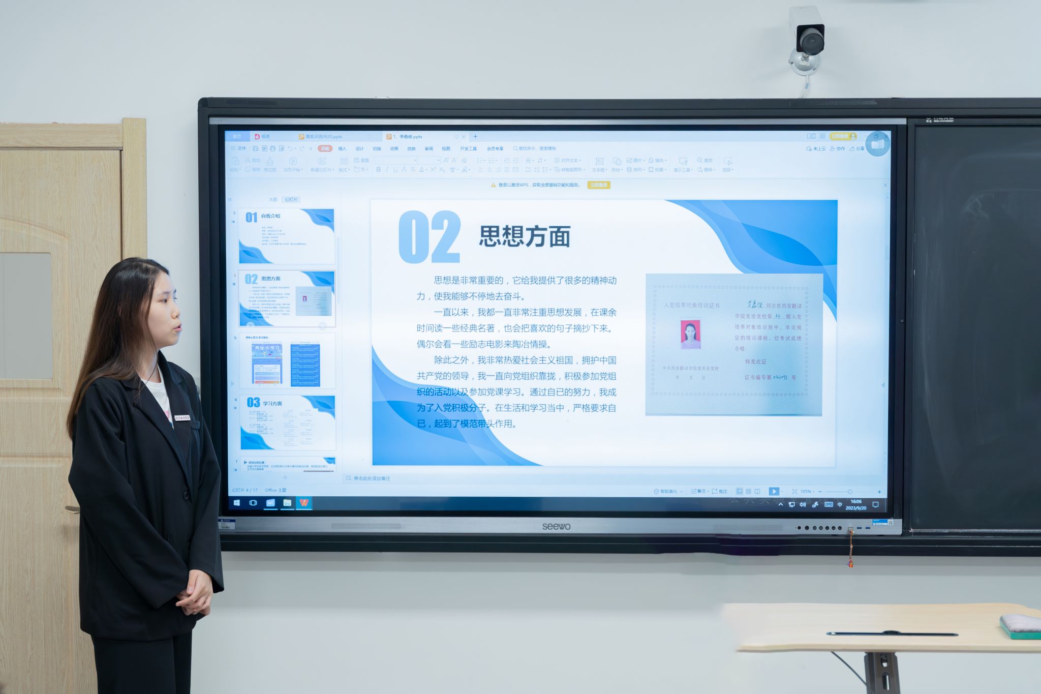 每位候选学生皆通过PPT汇报演讲形式,分别从思想面貌、学业成绩、学科竞赛、社会实践、创新能力,未来展望等方面对自己在在校期间的学习经历,成长历程以及取得的优异成绩做了详细阐述。