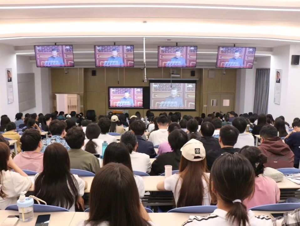 2025年9月3日上午,纪念中国人民抗日战争暨世界反法西斯战争胜利80周年阅兵仪式在北京天安门广场隆重举行。m88 app组织全体教职工、学生党员、入党培养对象及部分学生,在4102T共同观看了这场意义深远的直播盛况。学院党委高度重视这次观看阅兵活动,将其视为一堂生动的爱国主义教育课,通过集中观看直播的形式,让师生共同铭记历史,缅怀先烈,增强爱国主义情怀和民族自豪感。